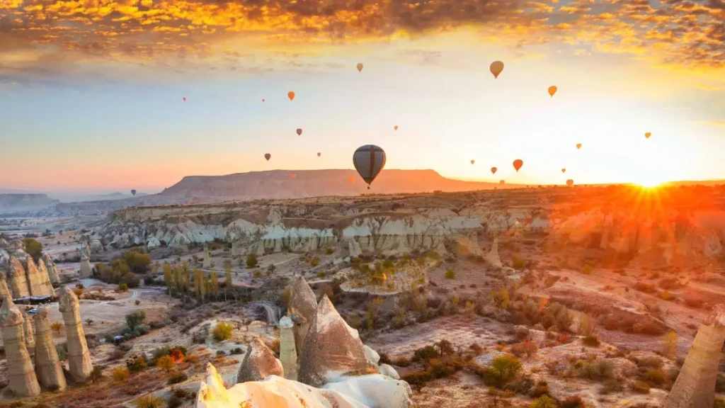 Si hay una experiencia que define el «viaje de una vida», es ver amanecer en Capadocia desde la cesta de un globo aerostático. Ver cómo el sol ilumina las «chimeneas de hadas» y los valles lunares mientras cientos de globos salpican el cielo es algo que ninguna foto puede capturar con justicia.
